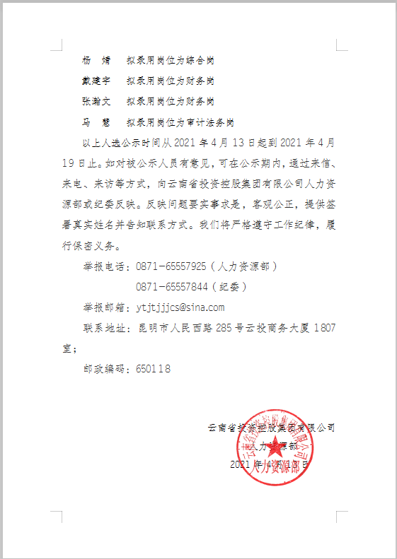 亚l博体育app下载社会公开招聘拟录用人选名单公示
