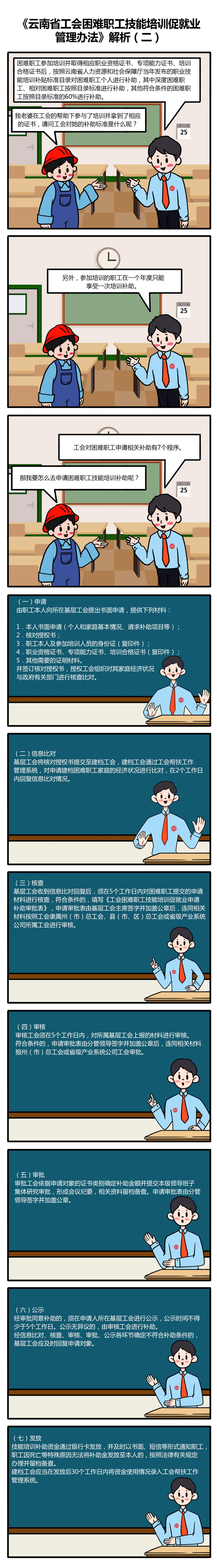 2021年下半年,云南省总工会根据全国总工会会议、文件精神,按照“一般困难机制帮、突发困难及时帮、突出困难重点帮”的要求,结合我省实际,全面修订完善了《云南省总工会关于建立健全困难职工帮扶长效机制的意见》等困难职工帮扶服务“1+10”制度文件,构建起困难帮扶、送温暖走访、互助保障相互衔接、层次清晰的长效梯度帮扶工作新格局。为广泛宣传“1+10”制度文件精神,省总工会制作了30期职工易于理解、喜闻乐见的互联网漫画推文,以更形象、更直观、更具体的方式展现给广大职工群众,切实提高困难职工帮扶政策知晓率,今天推出“专题11-2期”。