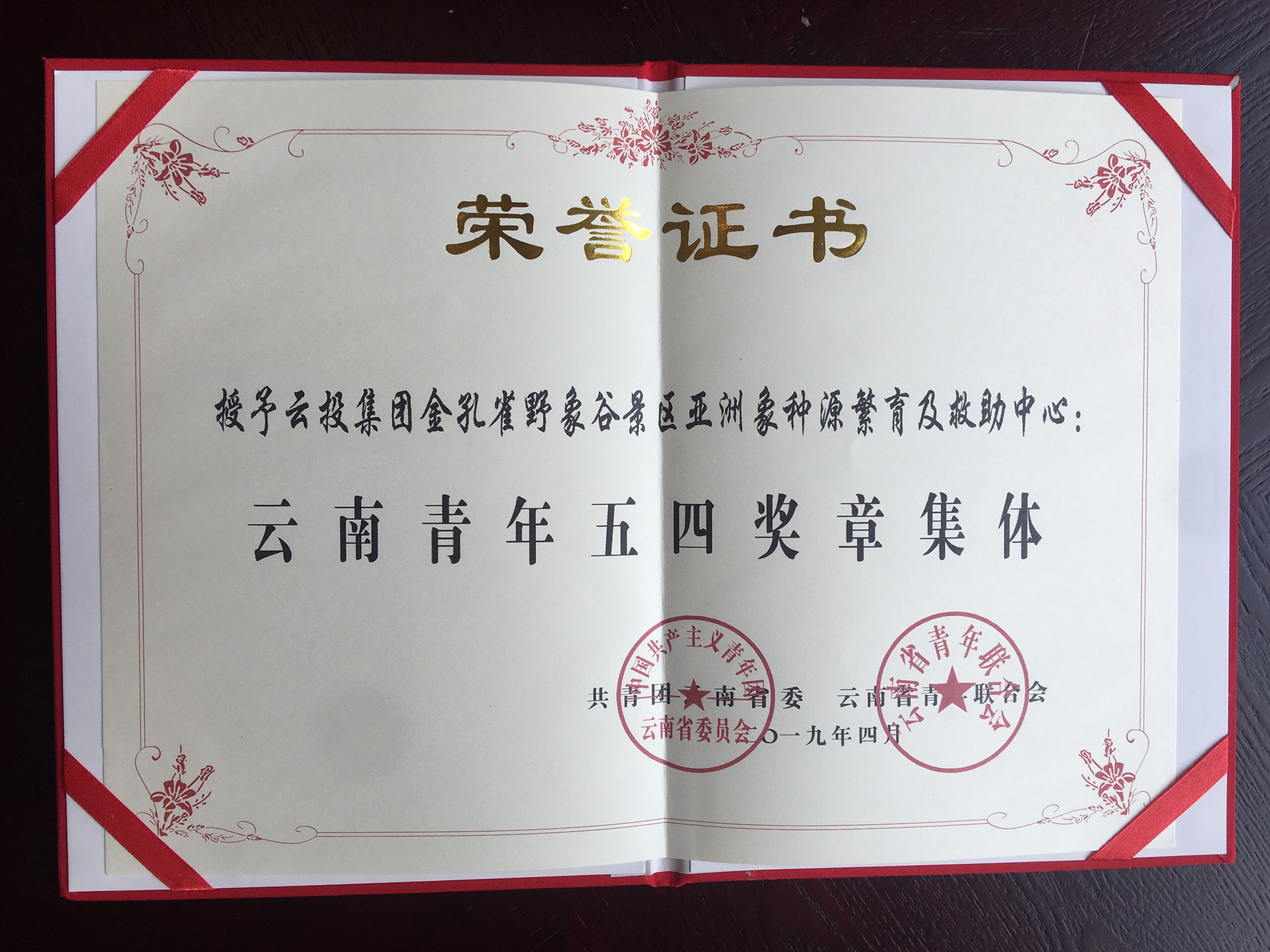 会上,共青团云南省委与云南省青年联合会表彰并颁发了2019年“云南青年五四奖章集体”荣誉证书和牌匾,亚l博体育app下载金孔雀野象谷景区亚洲象种源繁育及救助中心获得该项荣誉。