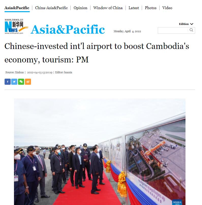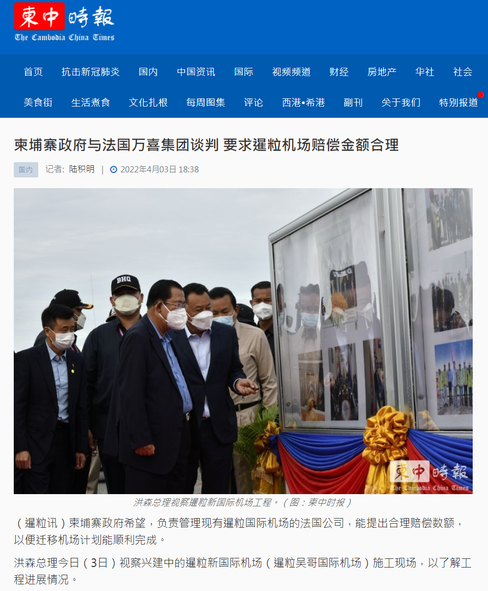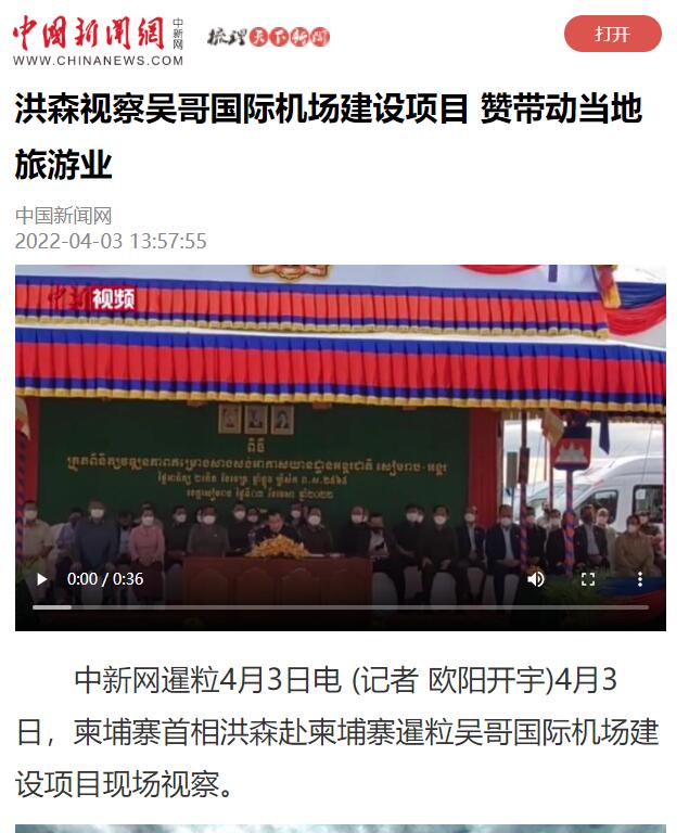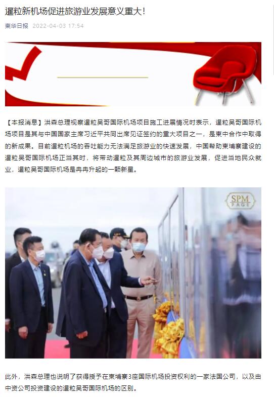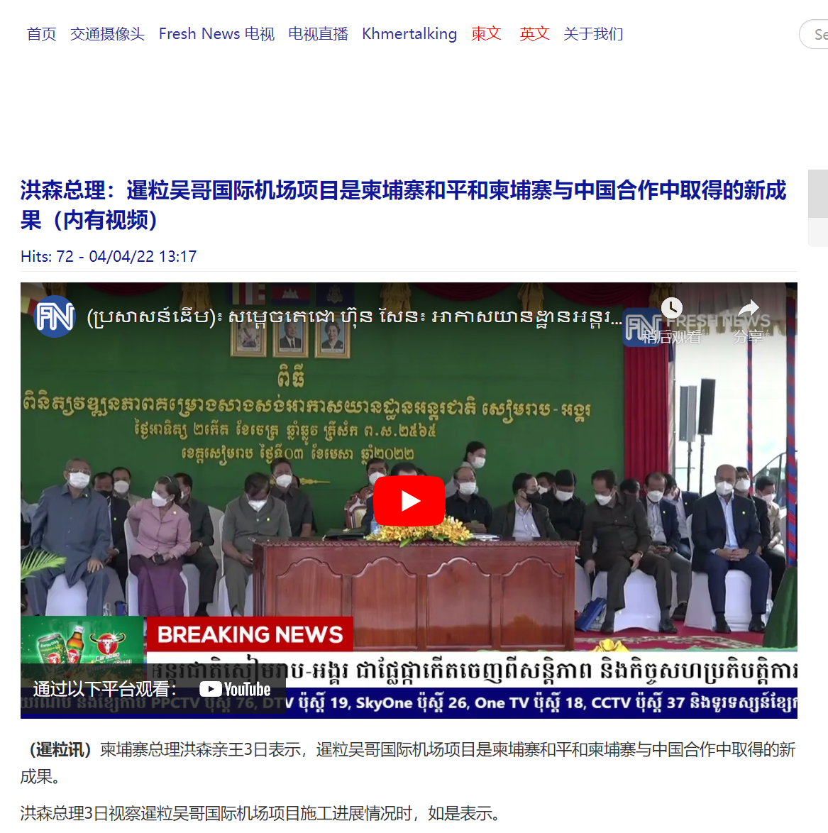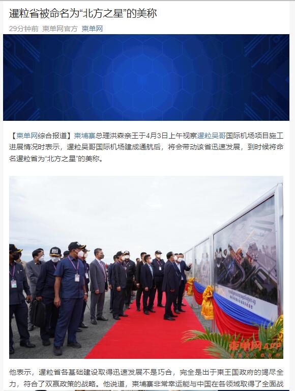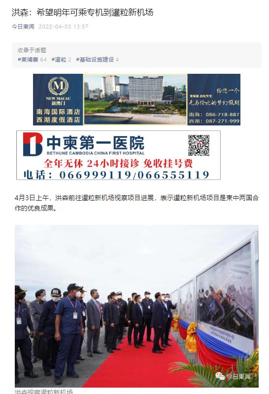 当地时间4月3日上午,柬埔寨首相洪森赴暹粒吴哥国际机场建设现场了解项目施工情况。中柬媒体进行了集中关注和报道。