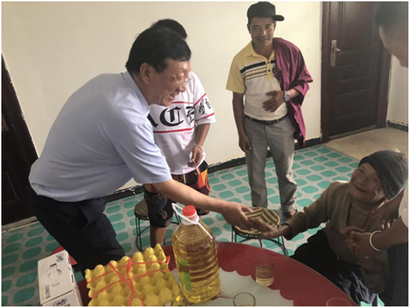 徐良栋总监到勐宋村邦佑小组钟阿车、小钟阿安两户贫困户家中,与他们面对面交谈、心贴心交流,详细地了解他们的家庭情况、健康状况、经济来源和生活开支等情况,嘱咐两家老人保重身体,并在端午节来临之际为他们送去节日的祝福和慰问品。