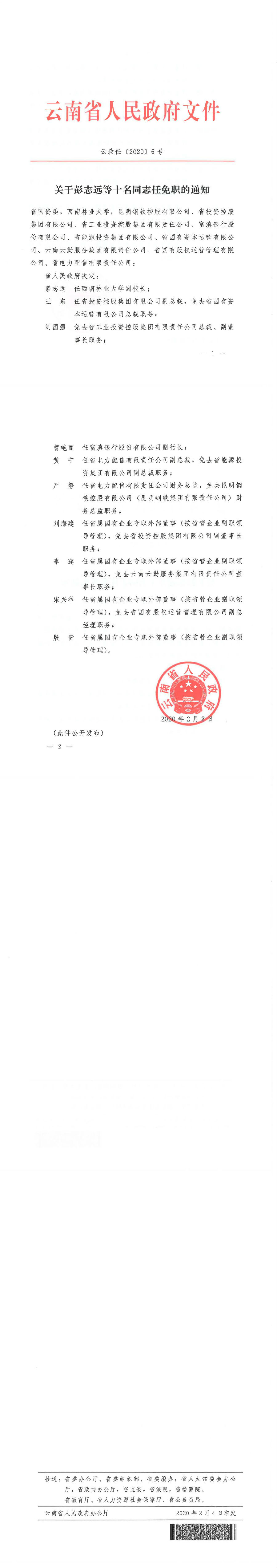 云南省人民政府关于王东、刘海建等10名同志任免职的通知